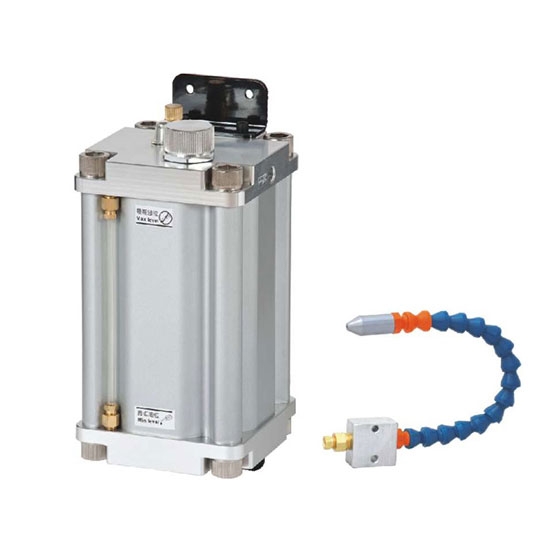 OM油霧潤滑系統(tǒng)由油箱,調(diào)節(jié)閥,油管和噴嘴組成。系統(tǒng)油箱接入壓縮空氣,潤滑劑受壓后通過導(dǎo)管裝置,隨壓縮空氣從噴嘴噴出。系統(tǒng)通過手動(dòng)調(diào)節(jié)空氣壓力和潤滑劑量來調(diào)節(jié)所需的氣霧量。 氣霧輸送距離最長可達(dá) 10 m。