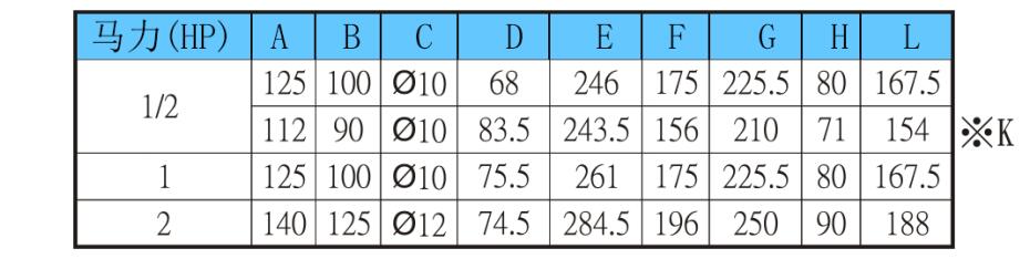5、重油泵浦若選用1/2HP馬達(dá),標(biāo)準(zhǔn)品固定孔125×100mm無(wú)注記,若欲更改固定孔112×90mm,請(qǐng)?jiān)谟嗁?gòu)代碼處加注※K。